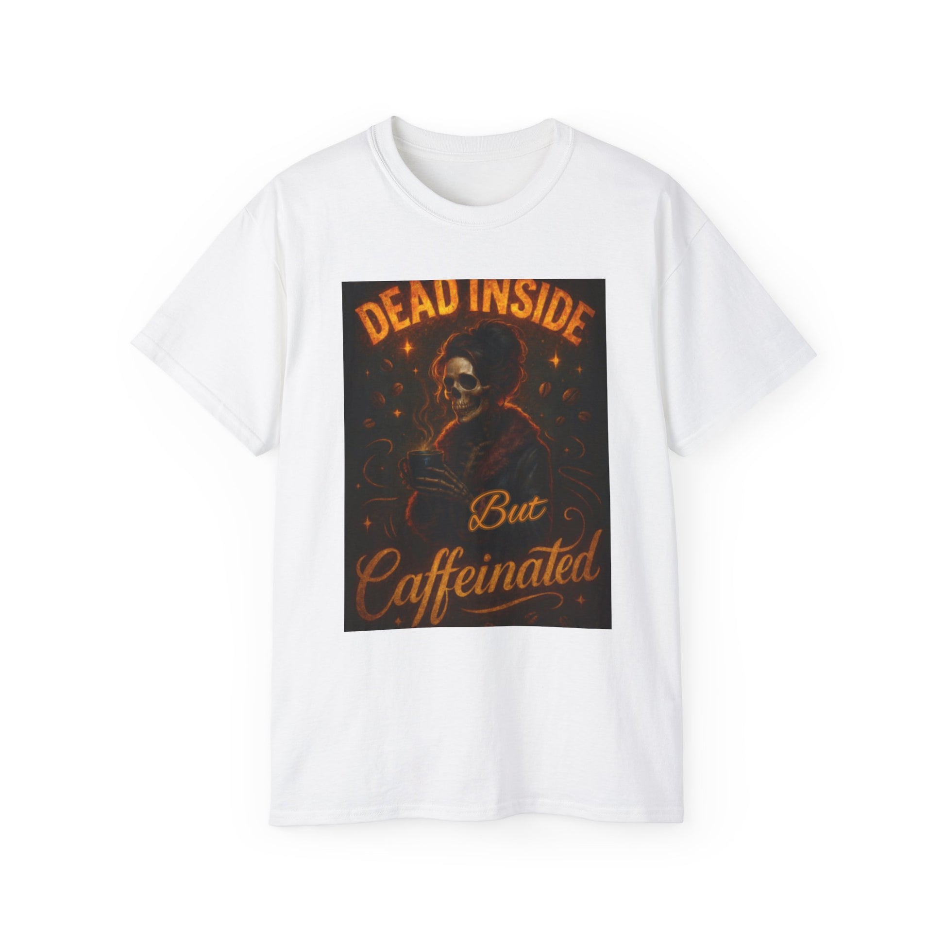 Introducing the perfect blend of comfort and style with our Unisex Ultra Cotton Tee. This tee captures a fun and slightly edgy vibe, making it ideal for those who appreciate a dose of humor in their wardrobe. Perfect for casual outings, coffee dates, or lounging at home, it offers an easy-going, relaxed fit that is ideal for various occasions. It's particularly relevant for celebrations like Halloween or everyday wear for coffee lovers, connecting with individuals who enjoy expressing their personality through unique graphic tees. This type of tee is also a great gift option for friends and family during the holiday season, especially for those who appreciate witty yet stylish fashion choices.